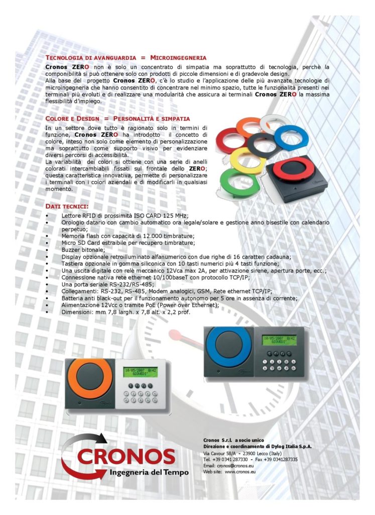 I sistemi CRONOS sono realizzati con terminali e programmi di nuova progettazione, prodotti con le più avanzate tecnologie hardware e software oggi disponibili e rappresentano la sintesi di 25 anni di esperienza nel settore.